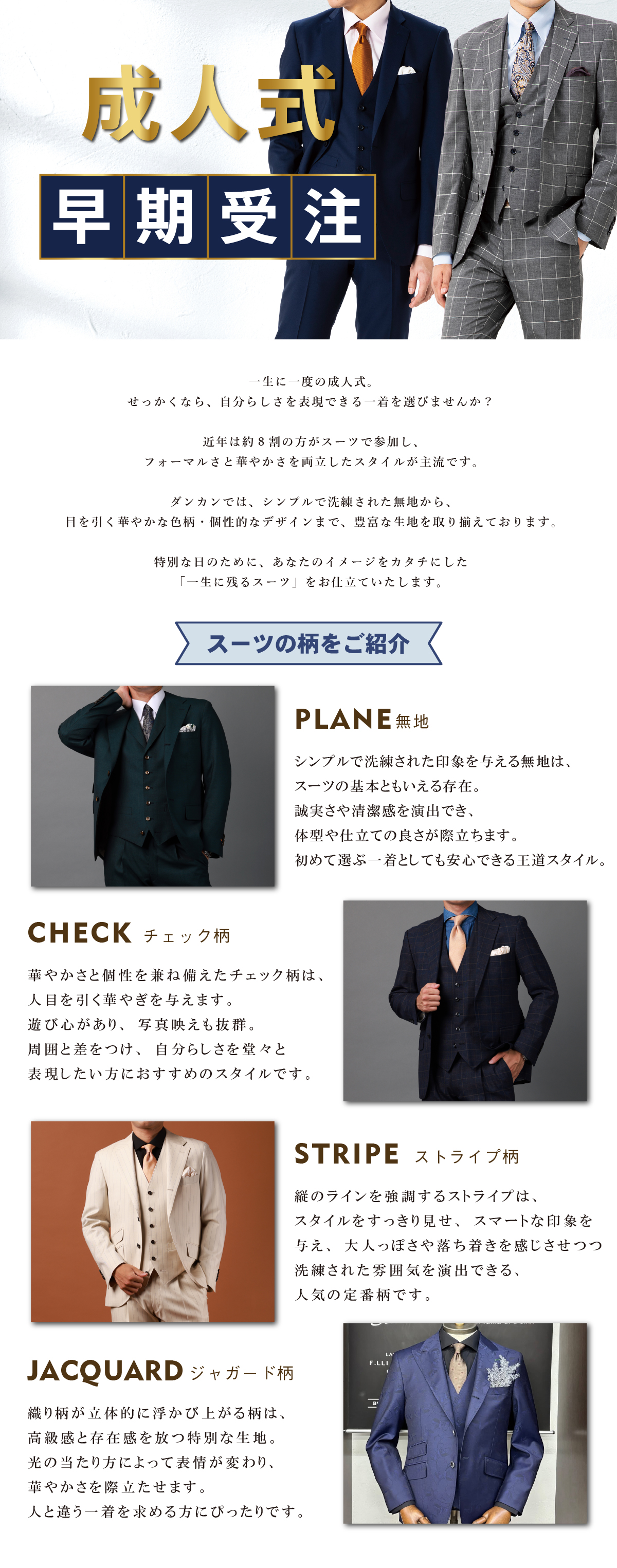 この機会に成人式用のオーダースーツをお仕立ていたしませんか?